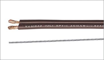 The wires are encased in a brown plastic sleeve. The bare ground wire is separate. One part of the brown sleeve has writing.