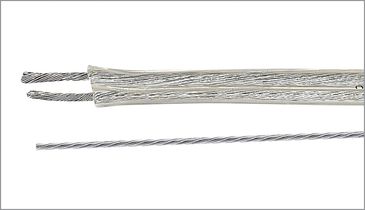 The wires are encased in a clear plastic sleeve. The bare metal ground wire is separate. One part of the clear sleeve has writing.